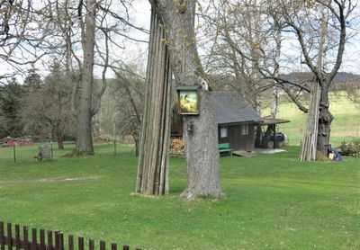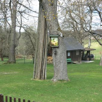 Obrázek Dobrý pastýř na stromě u domu 246 v Lipové, obrázek v obci Lipová v okrese Děčín