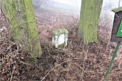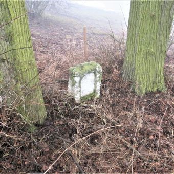 Podstavec ulomeného kříže u potoka v Suleticích