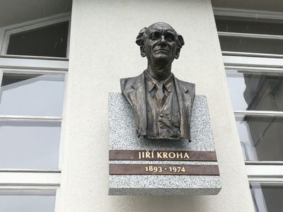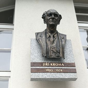 Pamětní deska s bustou Jiřího Krohy, pamětní deska na budově střední průmyslové školy v Mladé Boleslavi, Havlíčkova 456/1