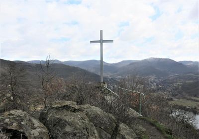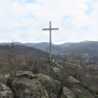 Kříž na skále Mlynářův kámen západně od Dolních Zálezel, pamětní kříž v obci Dolní Zálezly v okrese Ústí nad Labem