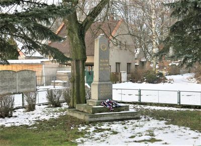 Pomník padlému rudoarmějci na návsi v Luštěnicích