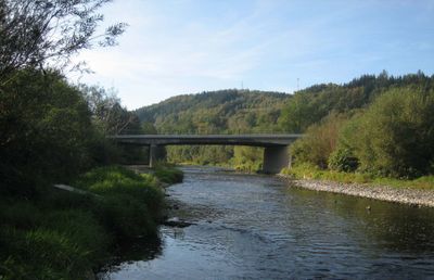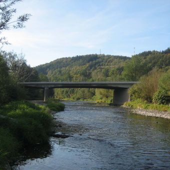 Horní most silnice III/05726 v Bystřičce přes přeliv z vodní nádrže Bystřička