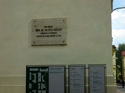 Pamětní deska Vojtěcha Rosického, pamětní deska v Brně na budově mineralogického ústavu (pavilon č. 2 v areálu PřF MU) na Kotlářské ulici