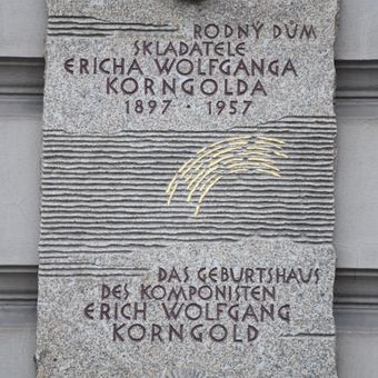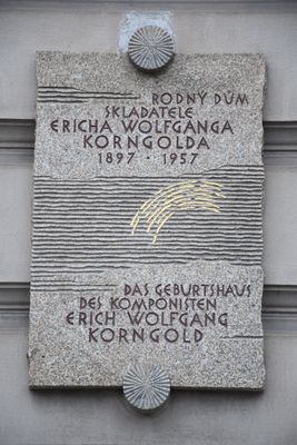 Pamětní deska Ericha Wolfganga Korngolda, pamětní deska na domě Koliště 1 v Brně