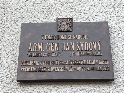 Pamětní deska Jana Syrového, pamětní deska v Třebíči
