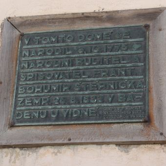 Pamětní deska na rodném domě Františka Bohumíra Štěpničky v Opatově