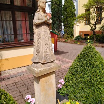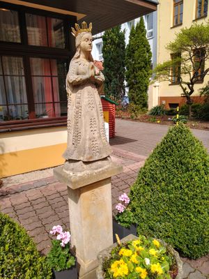 Socha Panny Marie v areálu CMŠ Lipenská v Českých Budějovicích, statue in České Budějovice 3, Czech Republic