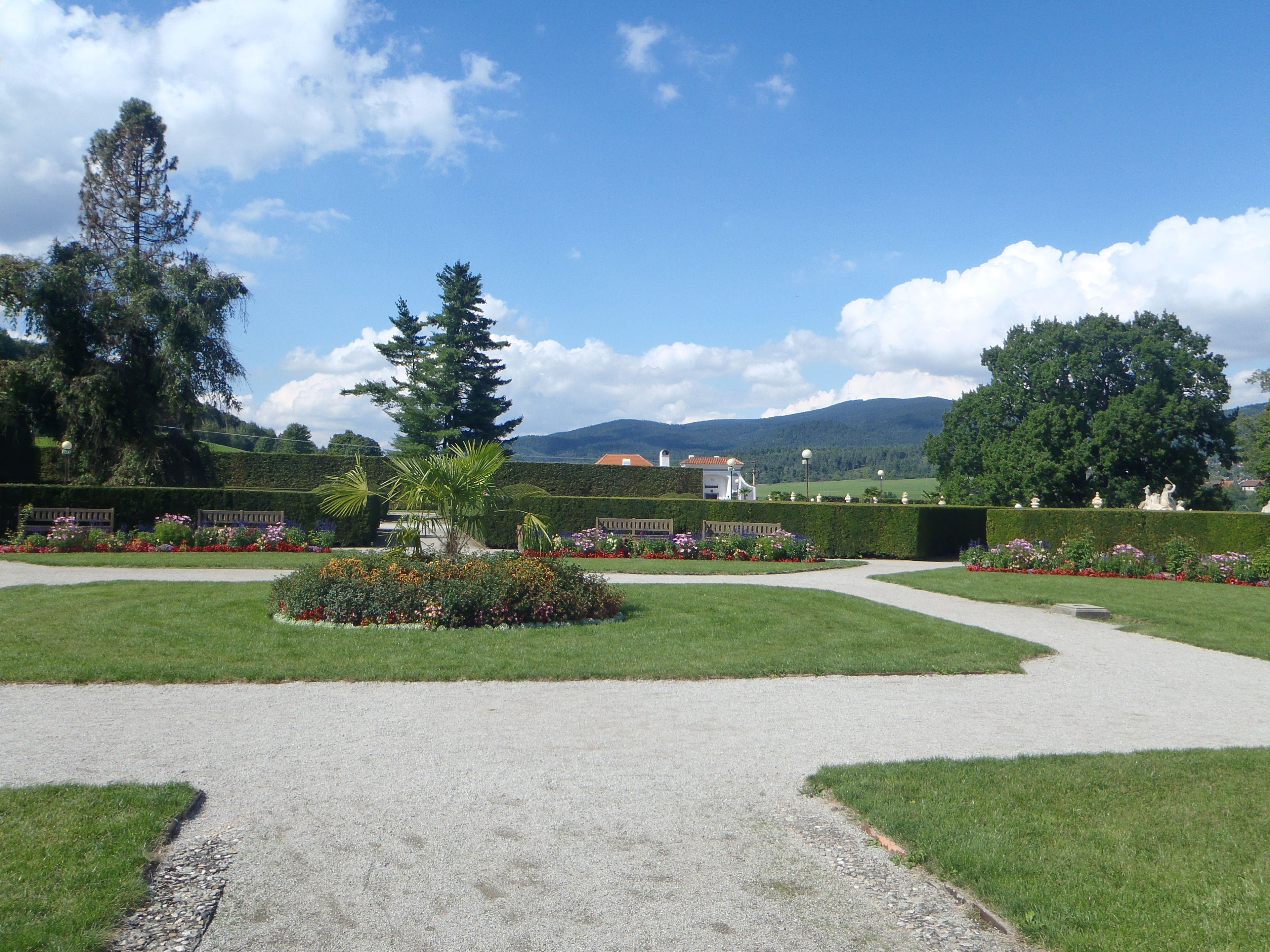 Castle gardens in Český Krumlov, garden in Český Krumlov, Czech Republic