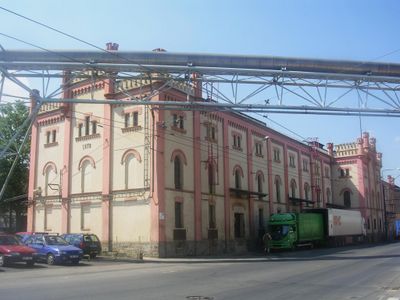 Pipeline bridge over Tovární street in Ústí nad Labem, potrubní lávka u areálu Spolchemie v Ústí nad Labem poblíž západního nádraží