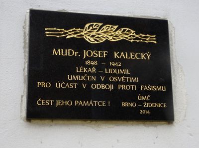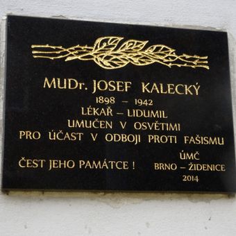 Pamětní deska Josefu Kaleckému v Kaleckého ulici v Židenicích, pamětní deska na území Židenic