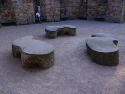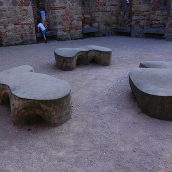 Sculptures/benches in Castle park, sculptures in Jičín