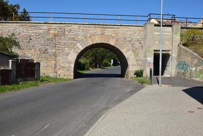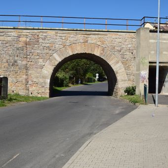 Railway bridge over Vrchlického street in Lom, horní viadukt v Lomu v okrese Most