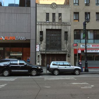 La Sinagoga Millinery Center si trova al 1025 Avenue of the Americas con esterni in calcare larghi 6 metri e profondi 18 metri.