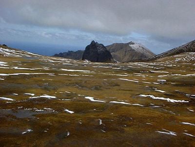 Il terreno irregolare dell'Isola Gough si estende per 65 chilometri quadrati, con il Picco Edimburgo che raggiunge 910 metri sul mare.