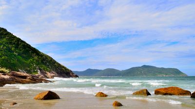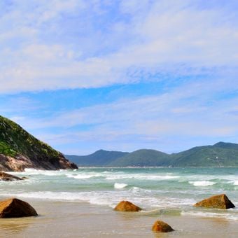 Praia do Saquinho, Spiaggia costiera nel sud dell'isola di Santa Catarina, Brasile.