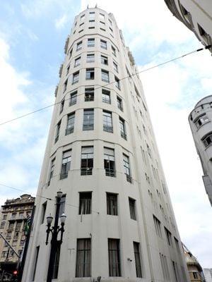 L'Edificio Saldanha Marinho si eleva per undici piani in Rua Líbero Badaró 39, presentando forme geometriche e linee circolari nella sua struttura.