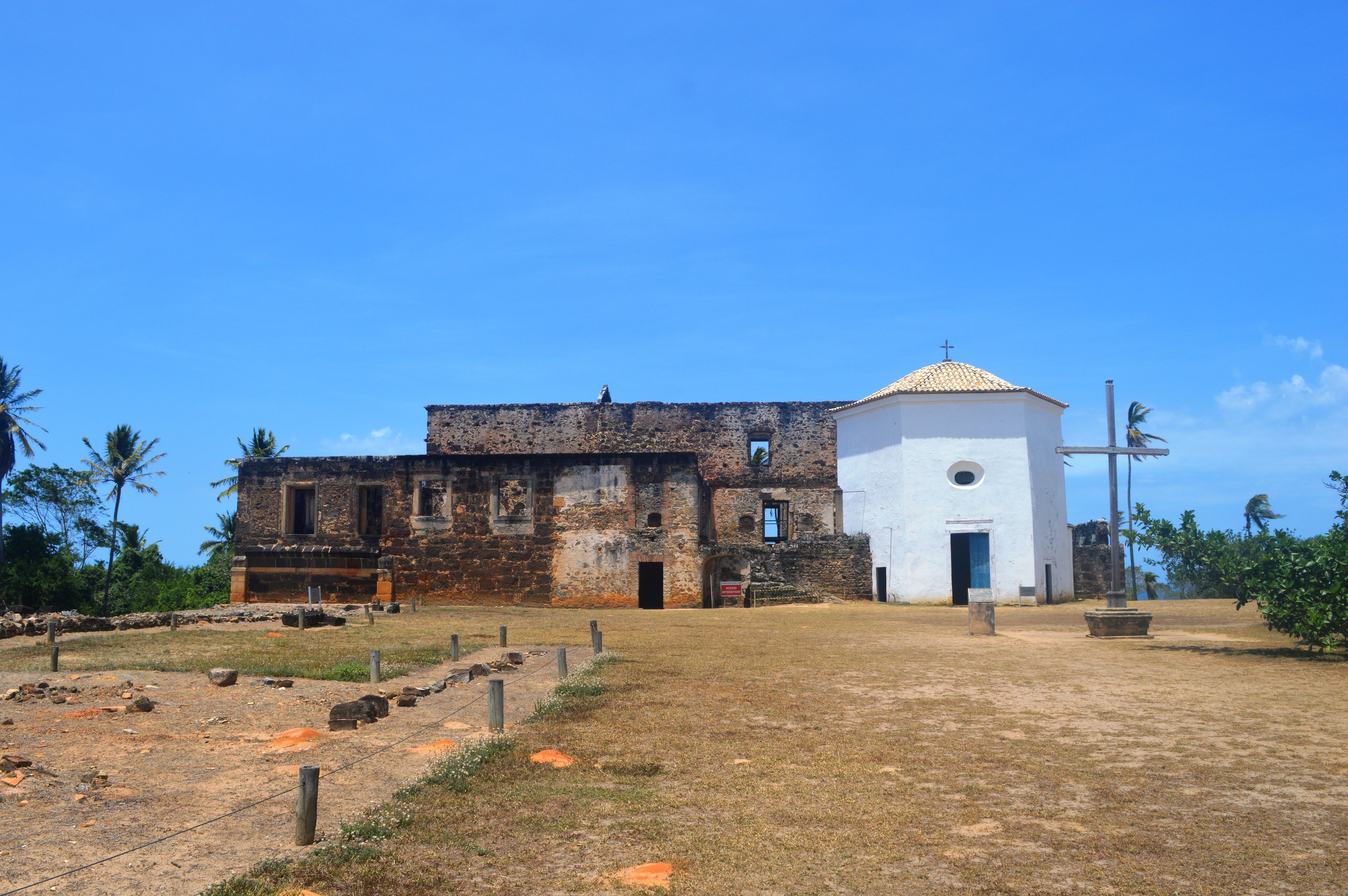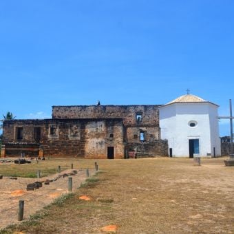 Le rovine sorgono su un terreno elevato vicino all'Atlantico, accessibili attraverso visite guidate dalla zona turistica di Praia do Forte.