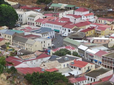 La comunità portuale si trova tra scogliere vulcaniche sulla costa nord-occidentale di Sant'Elena, con architettura georgiana e fortificazioni.
