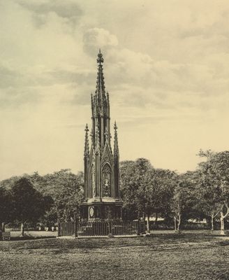 Il Monumento Michiels raggiungeva 14.4 metri di altezza, costruito con pareti in ferro battuto coperte di rilievi europei e livelli gotici.