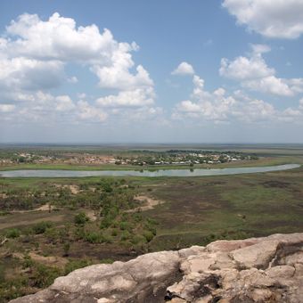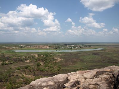 Gunbalanya si estende su un paesaggio tropicale con formazioni rocciose e pianure alluvionali, a 300 chilometri a est di Darwin.