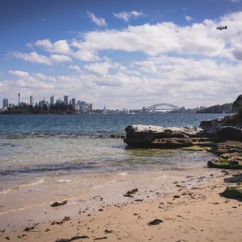 La posizione permette di vedere il ponte del porto di Sydney, l'isola Shark e il centro città sulle acque calme.