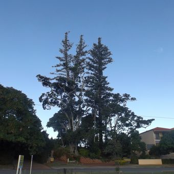 Cinque pini dell'Isola Norfolk si ergono al 127 Shore Street North a Cleveland Point, raggiungendo altezze notevoli sopra il paesaggio circostante.