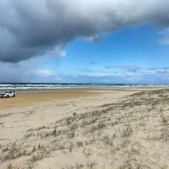 La spiaggia Seventy-Five Mile si estende per 120 chilometri lungo la costa orientale di Fraser Island, fungendo da spiaggia e strada ufficiale.