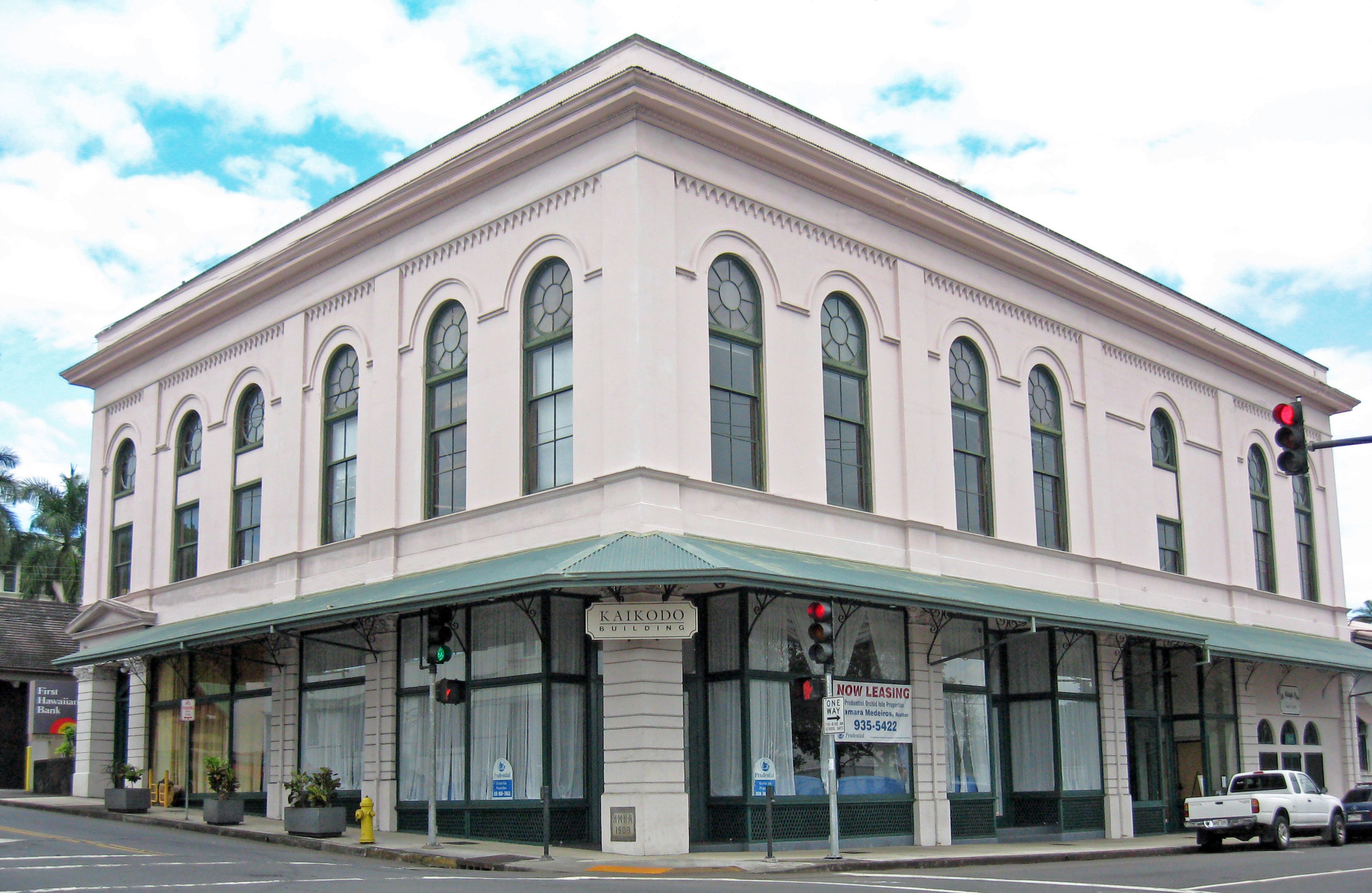 La struttura si trova al 64 Keawe Street, con spazi commerciali al piano terra mentre i livelli superiori mantengono la loro configurazione storica.