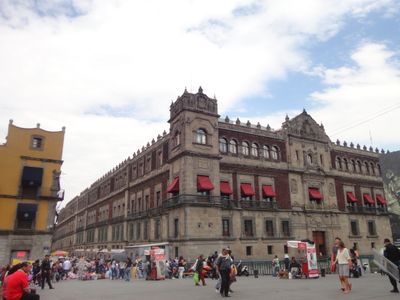 Il Palazzo Nazionale si estende sul lato orientale della piazza centrale, con una facciata rossa in tezontle che misura oltre 200 metri di lunghezza.