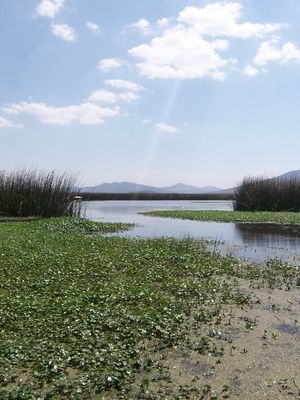 La Laguna de Tecocomulco si estende su 1.769 ettari a un'altitudine di 2.514 metri nel bacino endoreico del Messico centrale.