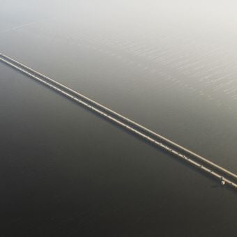 Il Lake Pontchartrain Causeway comprende due ponti paralleli che si estendono per 38.42 chilometri sul lago, sostenuti da 9.000 pilastri in cemento.