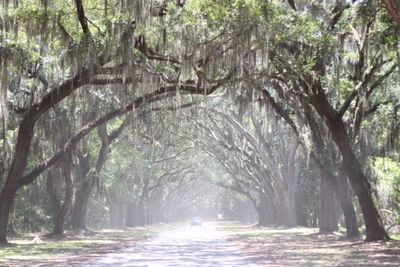 Il Sito Storico Wormsloe presenta un viale d'ingresso di 2,4 chilometri fiancheggiato da querce coperte di muschio spagnolo che formano un tunnel naturale.