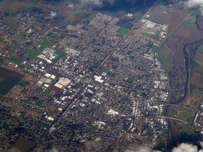 Yuba City presenta numerosi parchi, quartieri residenziali e zone commerciali distribuiti in una valle circondata da campi agricoli.