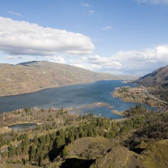 Il Parco Statale Mayer si estende lungo le gole del fiume Columbia, con una baia riparata, zone forestali di pini ponderosa e il punto panoramico Rowena Crest.