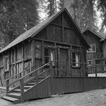 Il Distretto Storico Giant Forest Lodge comprende diverse strutture rustiche e cabine progettate per ospitare i visitatori nel Parco Nazionale Sequoia.