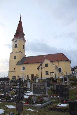 Kath. Filialkirche hl. Ulrich, subsidiary church with cemetery in Heiligenkreuz am Waasen, Austria