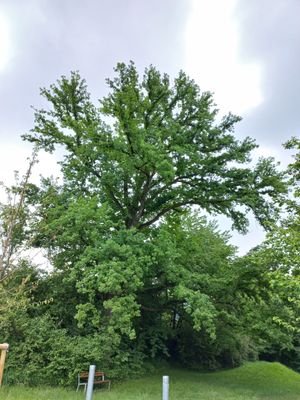 Natural monument oak, at the end of the Elsterweg (street) in the city of Dornbirn, Vorarlberg, Austria