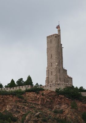 La torre in calcare di cinque piani si eleva per 30 metri sopra Cheyenne Mountain, dominando Colorado Springs, Il Broadmoor e Garden of the Gods.