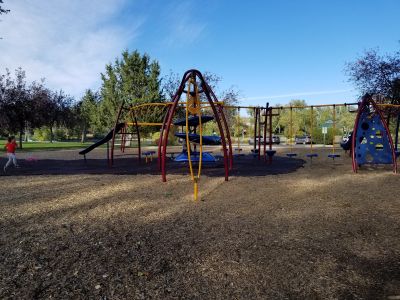 Il parco si estende su terreni paesaggistici con sentieri pedonali, aree giochi e zone ricreative per attività comunitarie vicino a Cheyenne.
