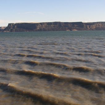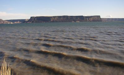 Il lago Banks si estende per 27 miglia attraverso il Grand Coulee, con due dighe in terra che mantengono il livello dell'acqua a 1.574 piedi di altitudine.