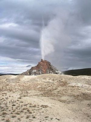 Il Geyser White Dome presenta una formazione conica di geyserite di 3,6 metri e produce eruzioni che raggiungono altezze di 9 metri.
