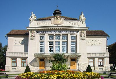 Il Stadttheater Klagenfurt si presenta come una struttura Art Nouveau, con elementi architettonici e dettagli ornamentali progettati dallo studio Fellner & Helmer.