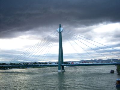 Il ponte della città del Danubio si estende per 741 metri sul fiume con una costruzione in acciaio e un design strallato che include sei corsie.