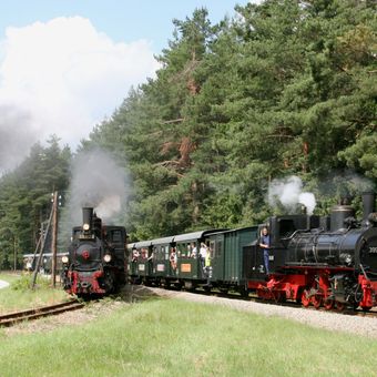 Il sistema ferroviario a scartamento ridotto si estende per 82 chilometri attraverso foreste, stagni e formazioni granitiche del Waldviertel settentrionale.