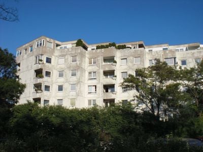 Costruito tra il 1978 e il 1980, questo complesso residenziale è stato progettato dagli architetti Klara Hautmann-Kiss, Rudolf Hautmann e Friedrich Rollwagen.