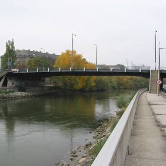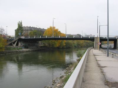 Fino al 1945, il sito del ponte ospitava una stazione della Ferrovia di Pressburg, che seguiva il corso del Canale del Danubio.