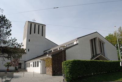 La Pfarrkirche Allerheiligen si presenta come una struttura religiosa moderna con linee architettoniche definite, progettata da Clemens Holzmeister.