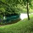 La Sorgente Blu rilascia 700 litri di acqua potabile al secondo, formando un bacino dove la luce solare crea riflessi verdi e turchesi.