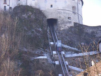 La funicolare Festungsbahn collega il centro di Kufstein alla fortezza, salendo a 507 metri sopra il livello del mare sulla città tirolese.