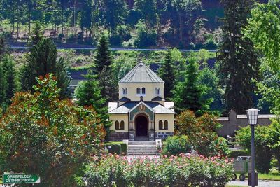 La cappella memoriale, costruita nel 1916, contiene mosaici colorati e arcate romaniche, successivamente trasformata in mausoleo per i soldati caduti.